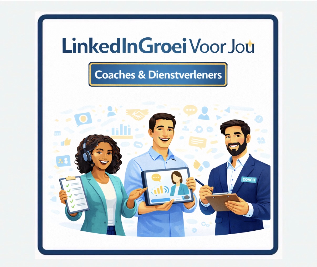 Voor coaches, trainers, ondernemers, personal brands en B2C bedrijven die LinkedIn willen inzetten voor zichtbaarheid, klanten en groei.